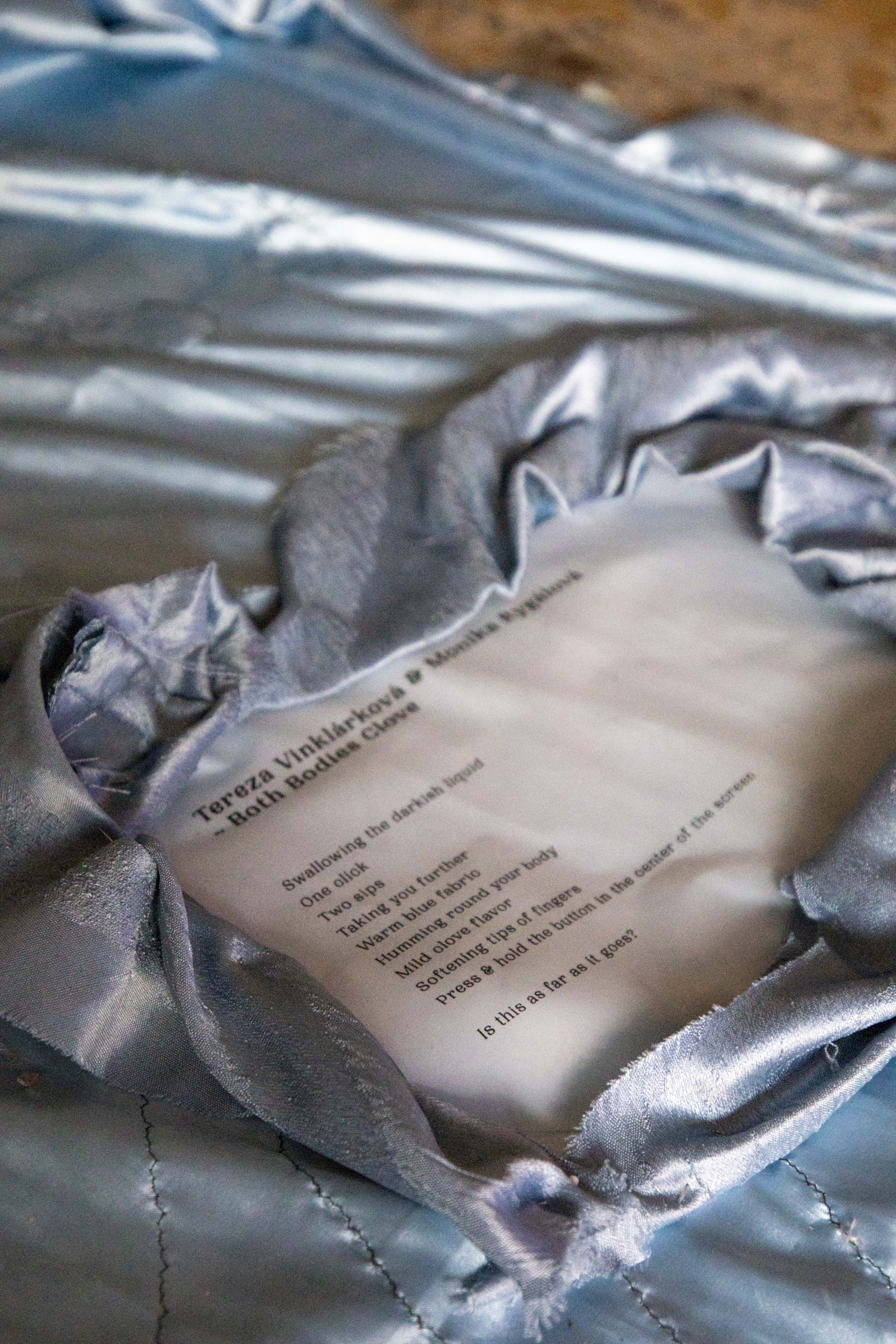 Stehy lehce otlačily kůži na holeních a zanechaly na ní klikatou stopu, jakoby jí prošla tenká jehla. Já, ty, ona, oni. Předat a přijmout. Jedna se zavrtěla, shlédla dolů na podušku a volnou rukou zapletla s elegancí do vzoru několik trčících vláken. Dříve nepatřičná, stala se naráz součástí struktury. A slunce zašlo. V bledých konturách měsíčního svitu bylo třeba pokračovat jen po hmatu. Level 3 – Dvě nebo tři dívky hrající předávanou. Překládat, párat, spojovat. Vidět, sdílet, poslouchat. S rostoucím chladem zalezly pod hřejivou tkaninu. Zachumlat se ruku v ruce. Noční obloha, vzdálené melodie a povídání před usnutím. Série obrazů za klížícíma se očima. První, druhá, třetí… Někdy se až zdá, že já je někdo jiný.